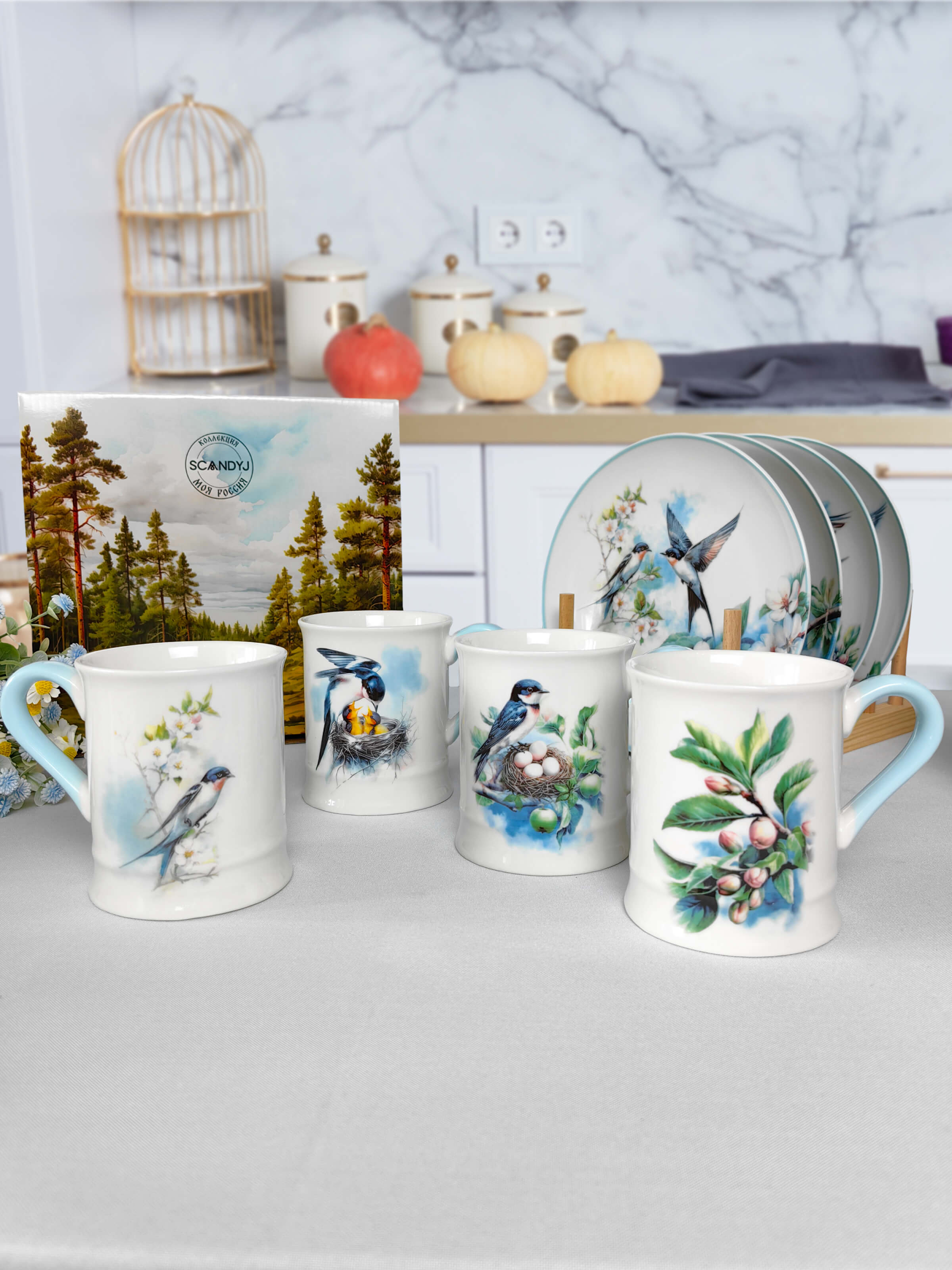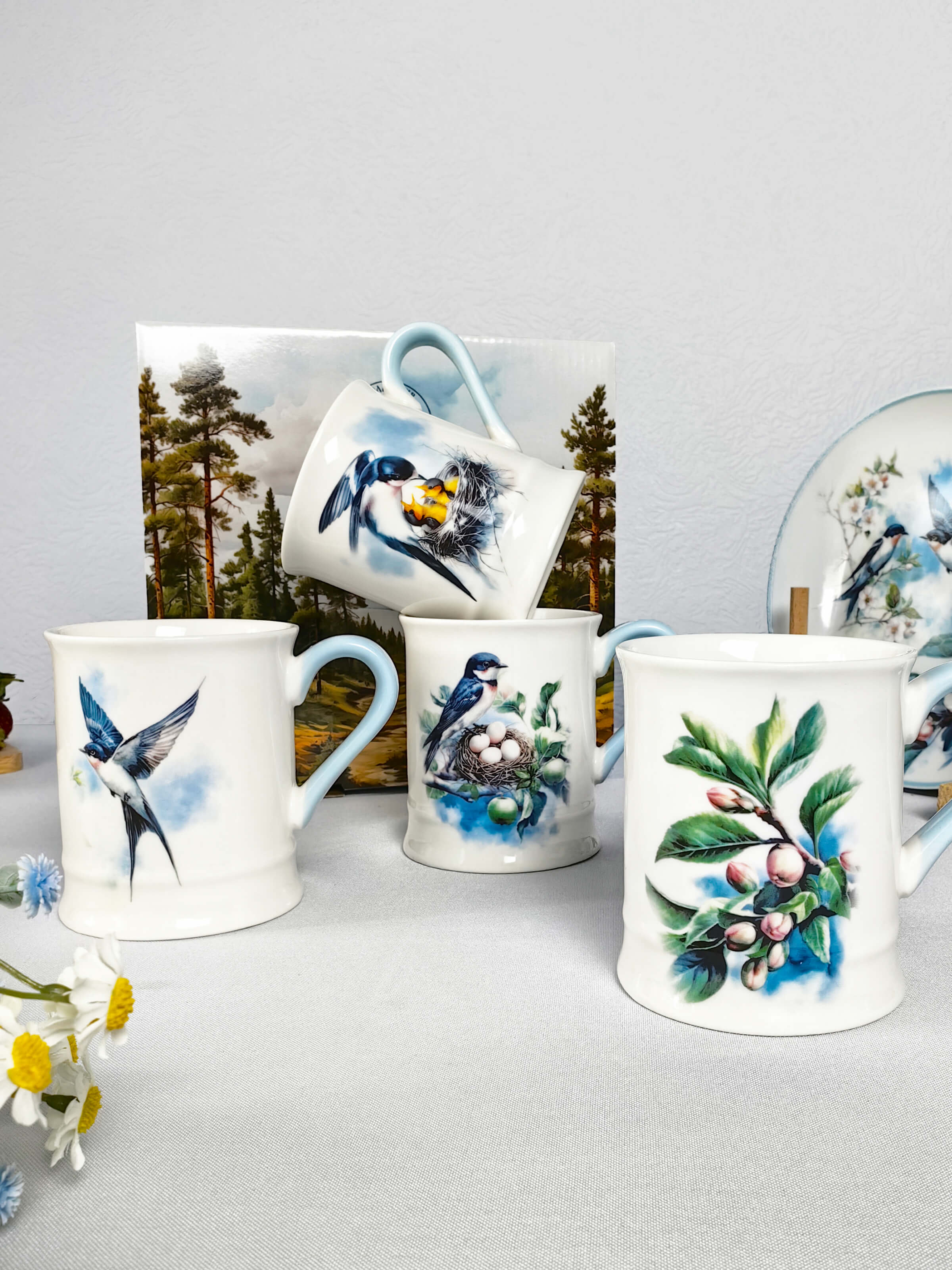 Набор кружек 300 мл (4 шт.) — коллекция «История любви ласточек» Почувствуйте нежность первого взгляда и мудрость вечной верности — в каждой кружке этой коллекции живёт крылатая поэма любви.