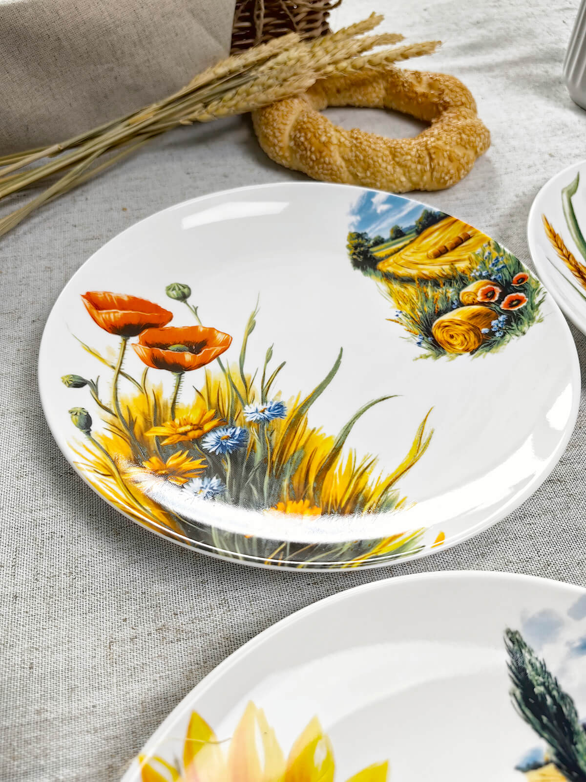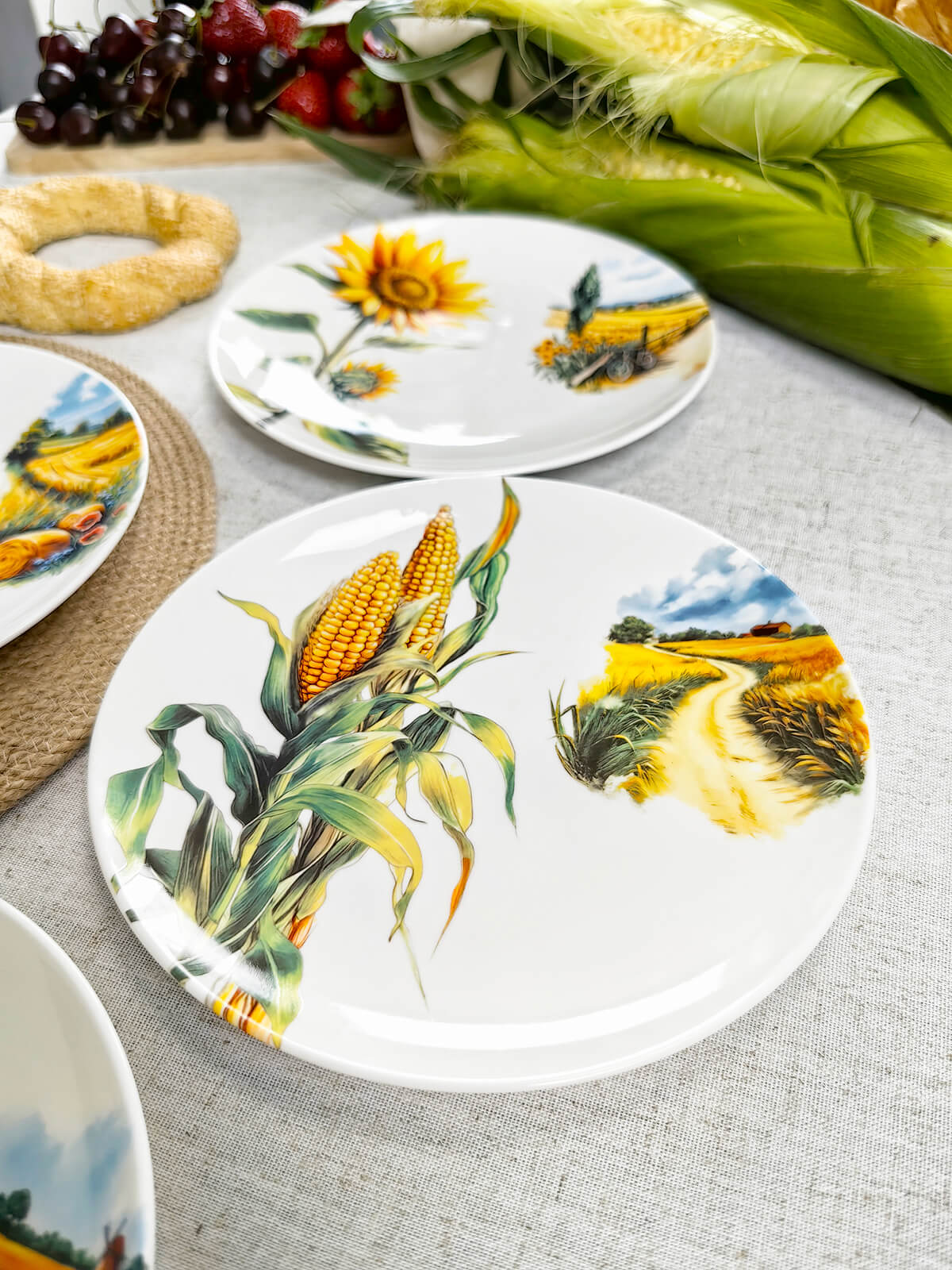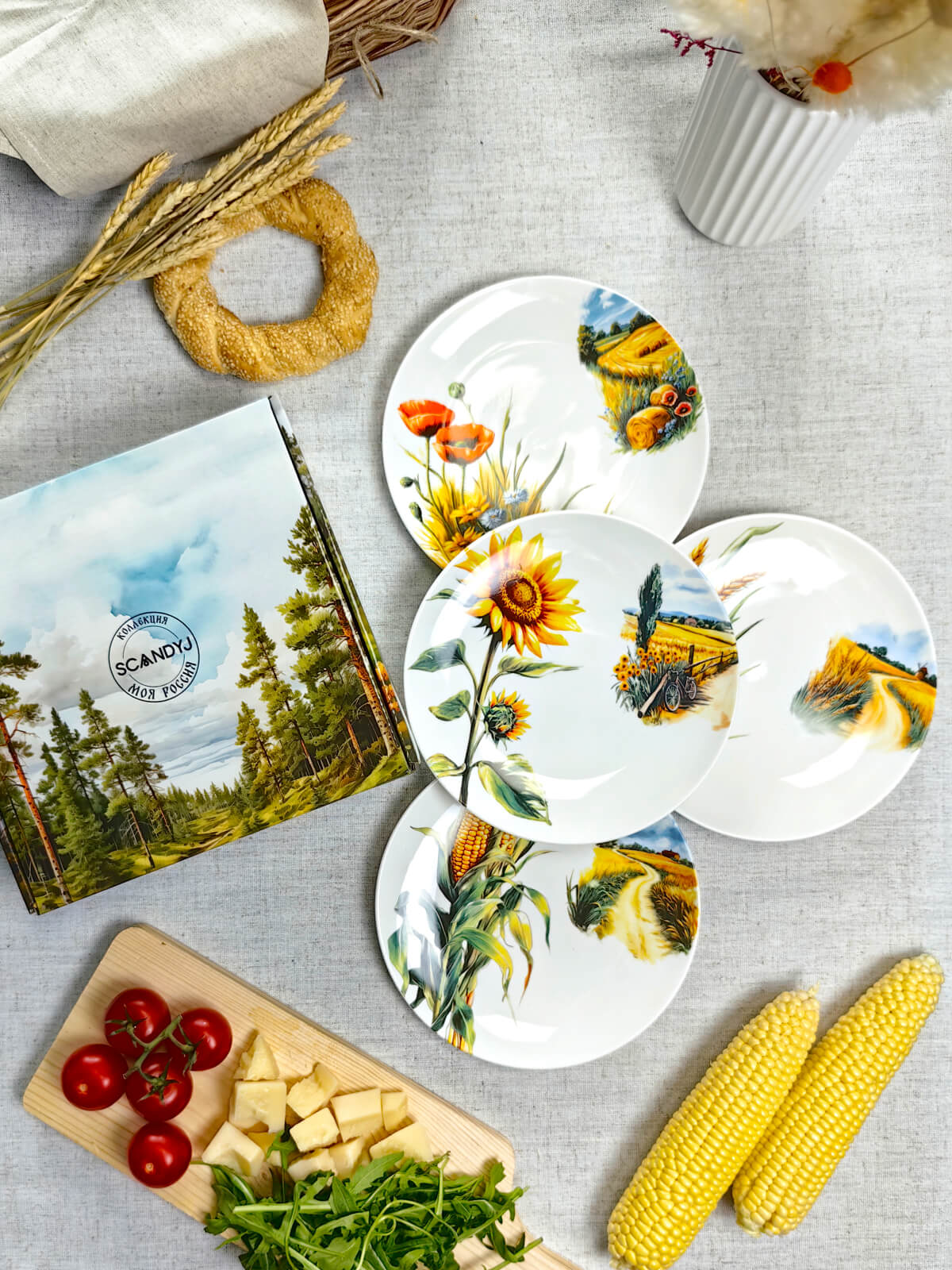 Щедрость лета в каждом штрихе. Четыре страницы золотого детства: — Пшеничное море с позолотой на колосьях, — Янтарная кукуруза в зелёных «рубашках», — Алые маки у сенных стогов с искорками росы, — Подсолнуховое царство с бархатными сердцевинами.