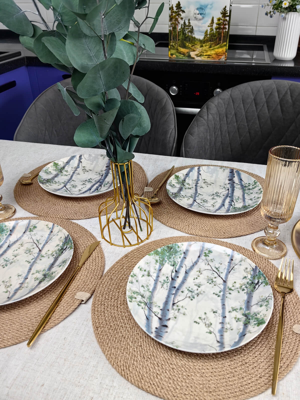 Набор тарелок упакован в подарочную коробку. Подарок ценителям: тихой красоты, завтраков на веранде и памяти о скрипе качелей под березами.