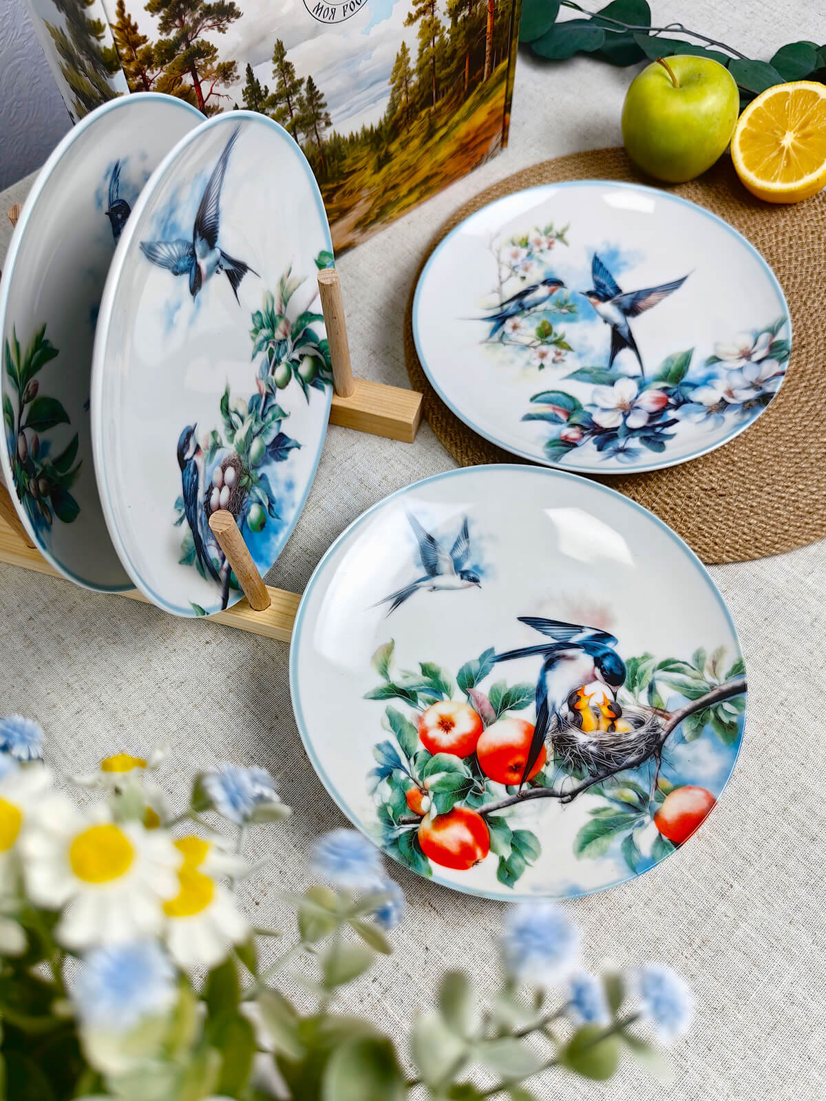 Набор тарелок упакован в подарочную упаковку — реликвия для тех, кто верит: настоящее гнездо строят вместе.
